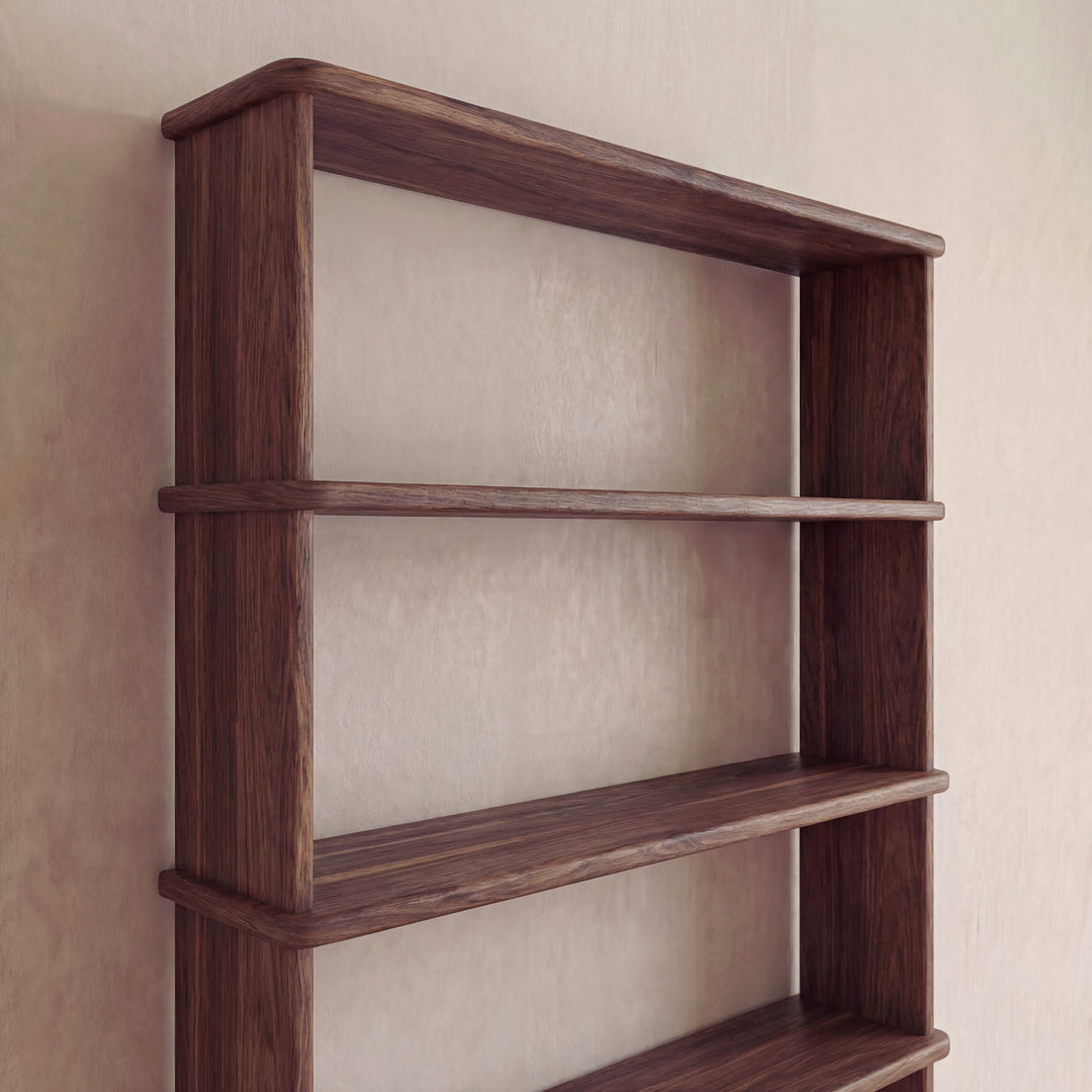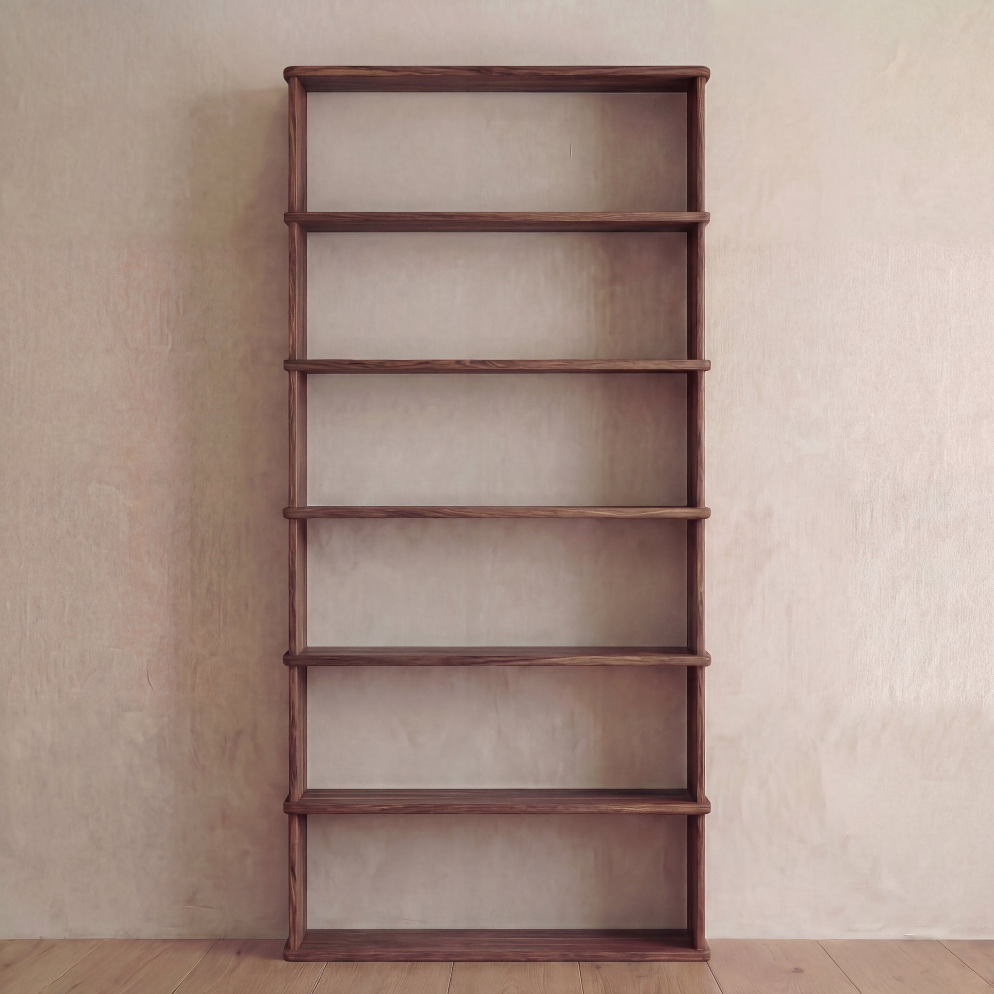 The 6 shelf bookcase is made entirely out of solid, kiln dried walnut, finished with a non-toxic hard wax oil to highlight the wood's natural colour and rounded over subtly to soften all of the edges.