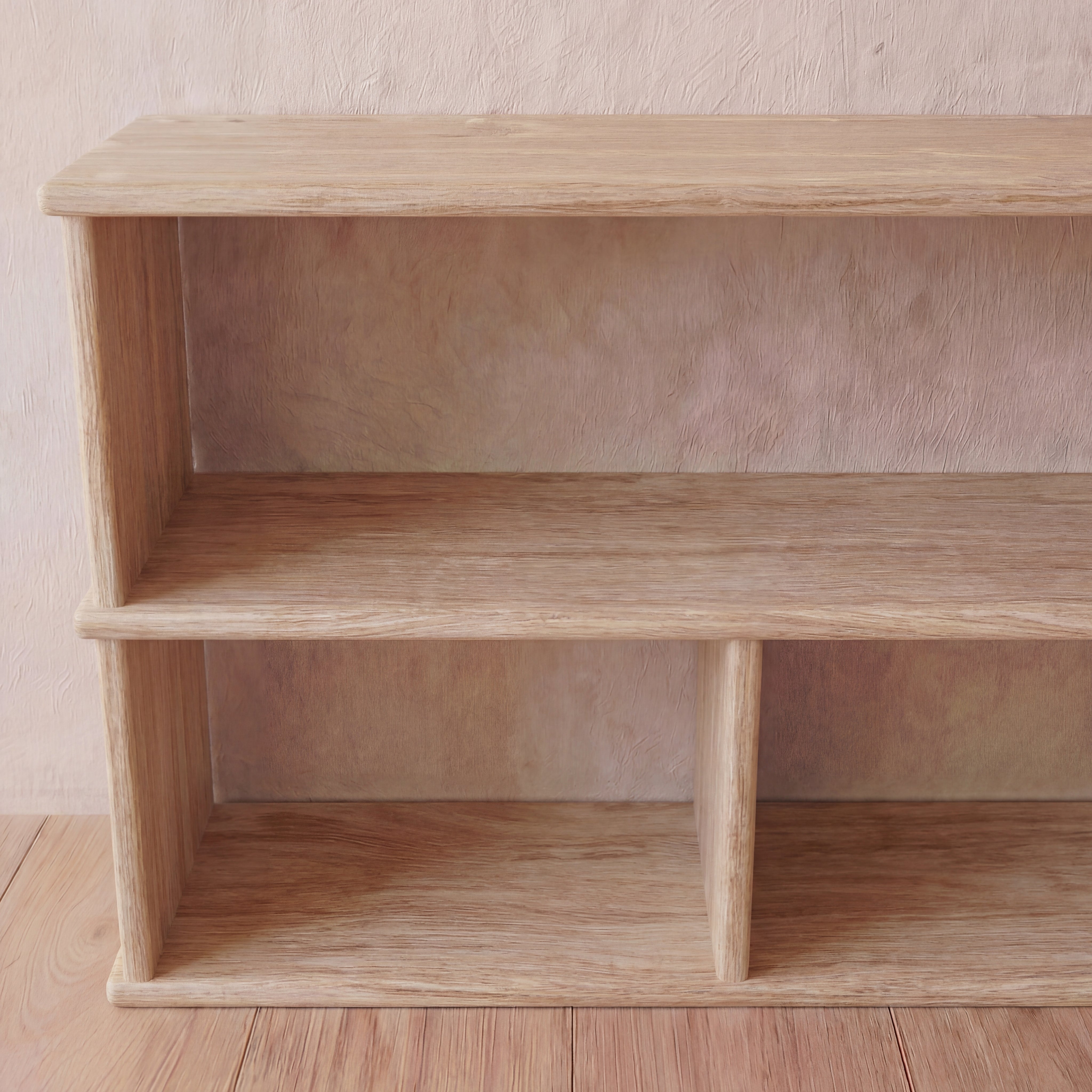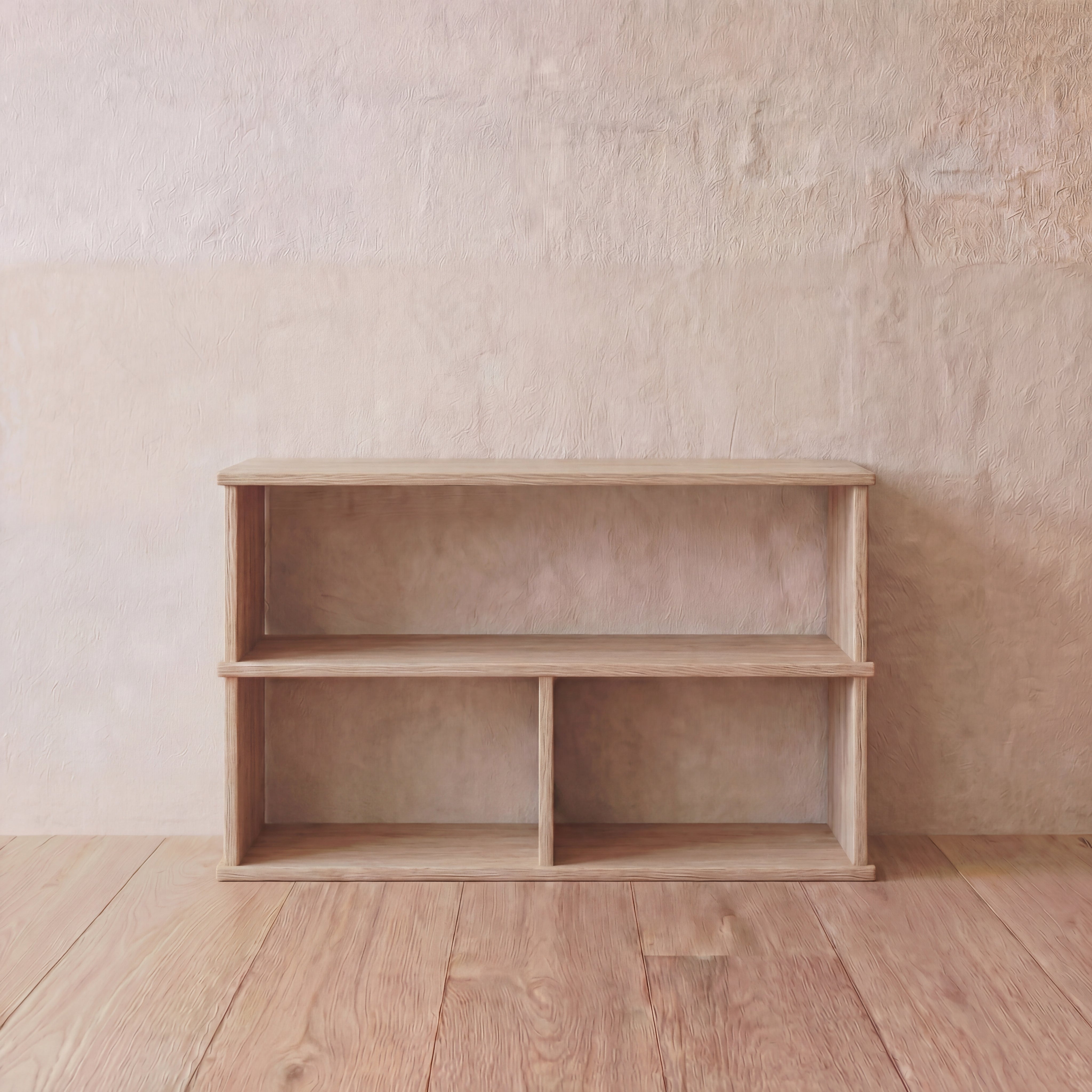 The 40 inch bookshelf tv stand is made entirely out of solid, kiln dried white oak, finished with a non-toxic hard wax oil to highlight the wood's natural colour and rounded over subtly to soften all of the edges.