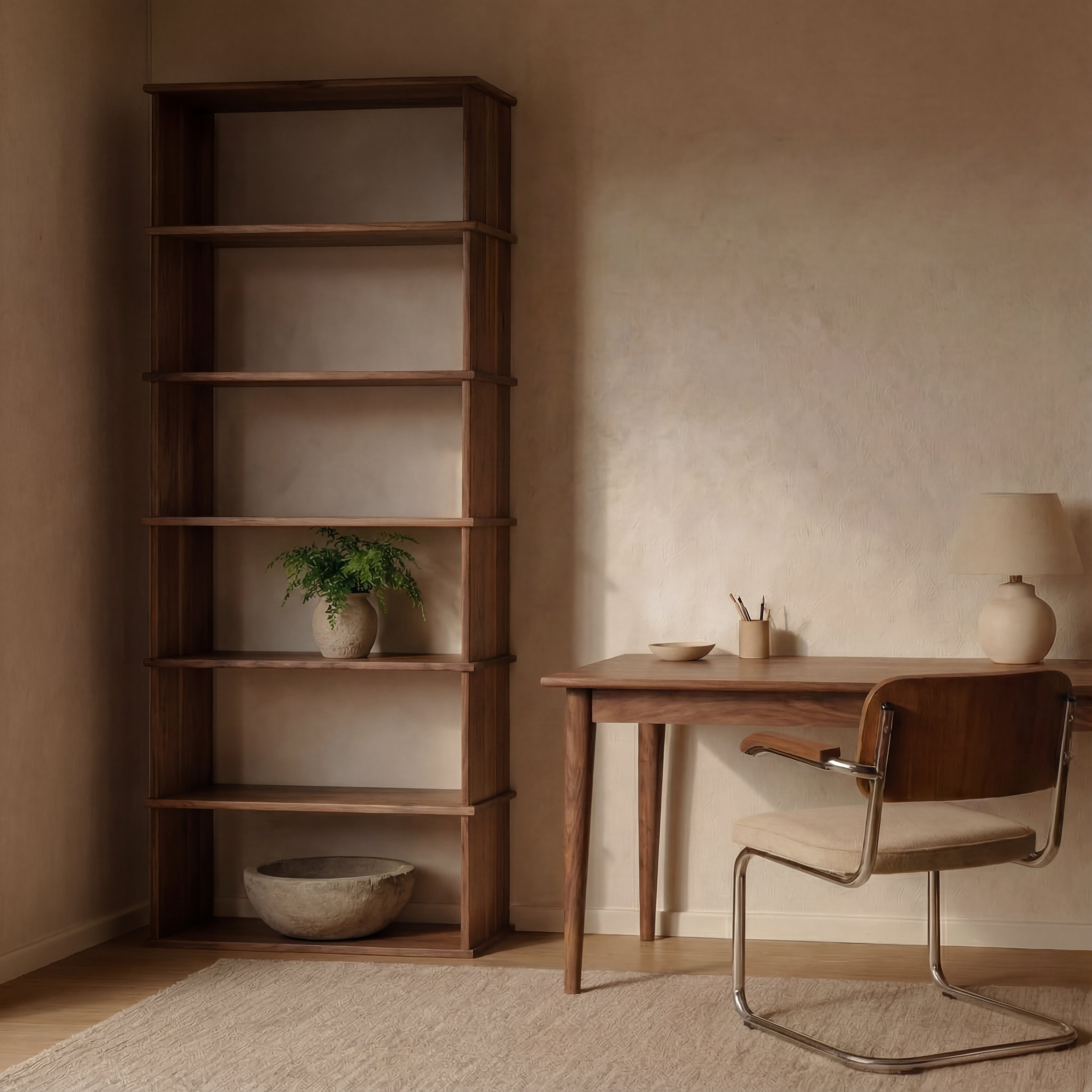 The panels come together via hidden mortise and tenon joints, resulting in a minimalist profile with no visible fasteners.