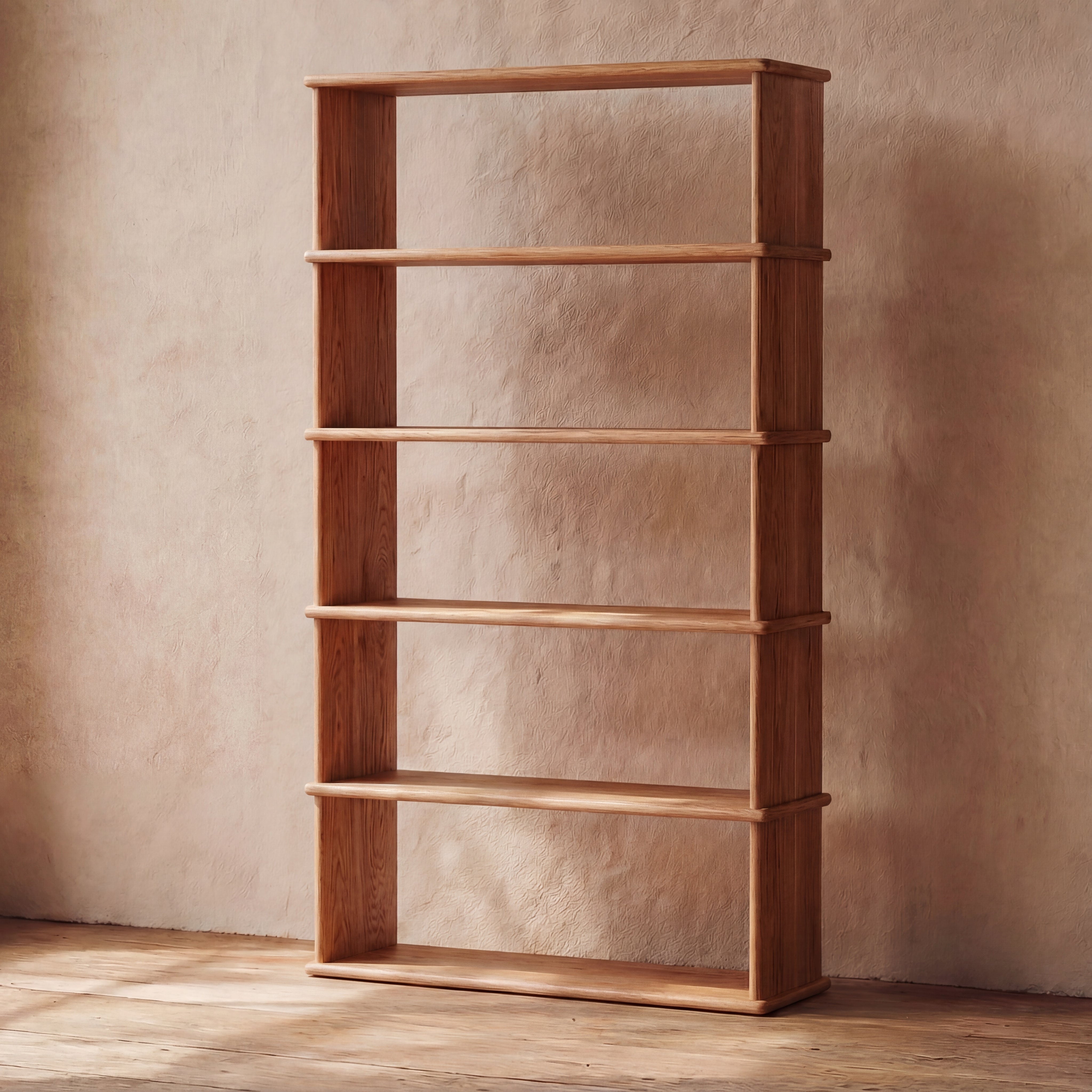 The 5 shelf bookcase is made entirely out of solid red oak, finished with a non-toxic hard wax oil to highlight the wood's natural colour and rounded over subtly to soften all of the edges.