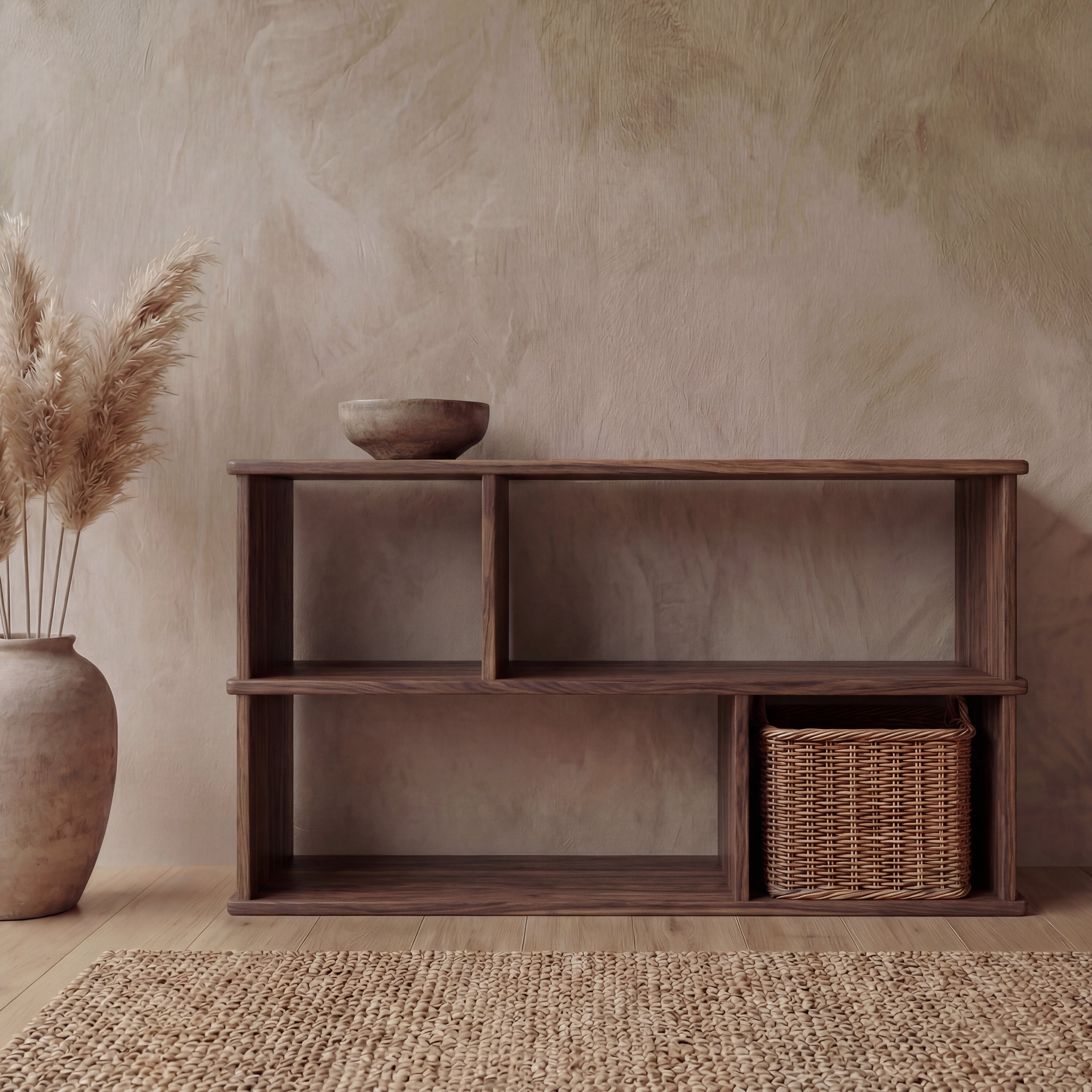 If you'd like to customize the dimensions of the horizontal bookshelf to fit your space, please reach out or design your own bookshelf