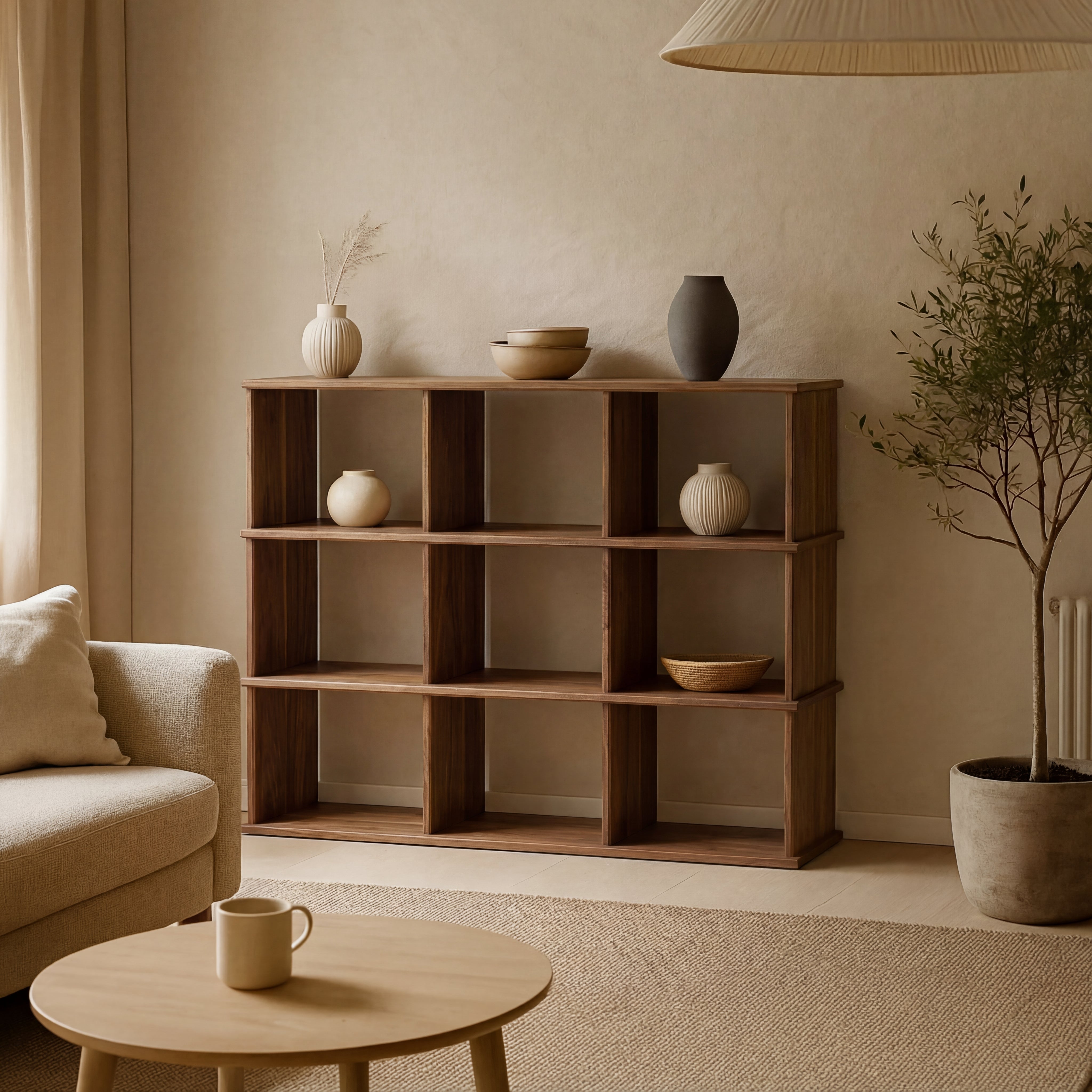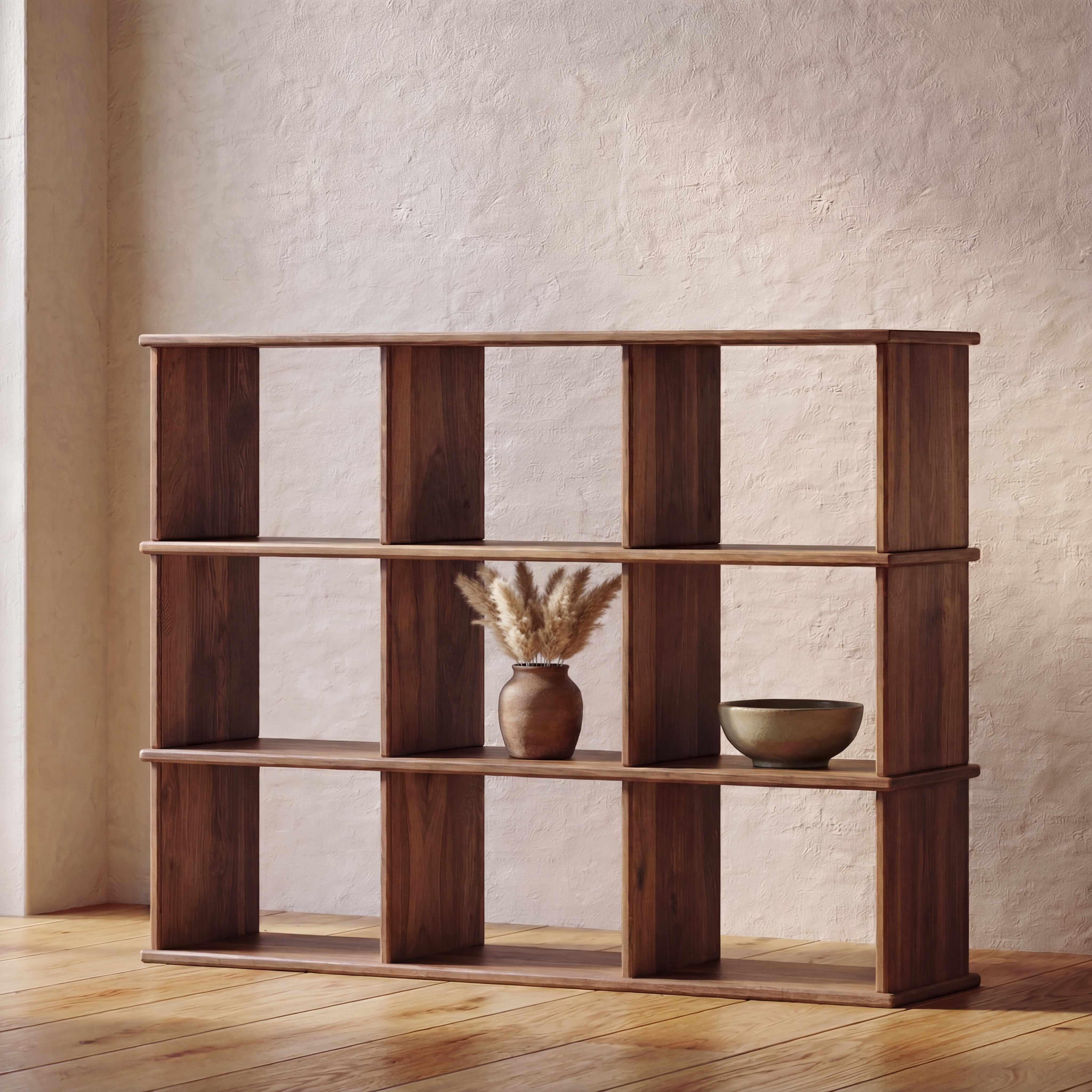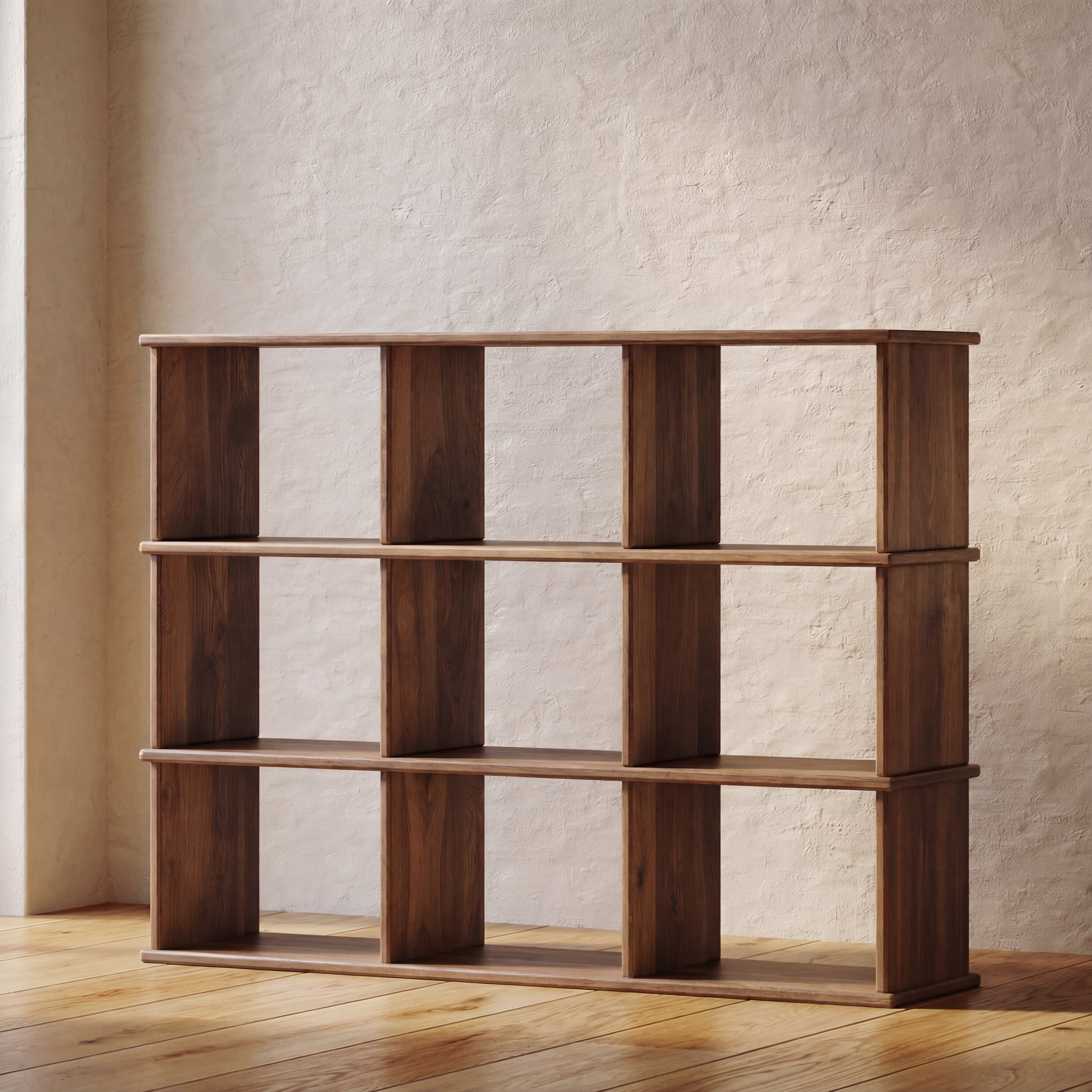 Nine cube bookshelf in walnut