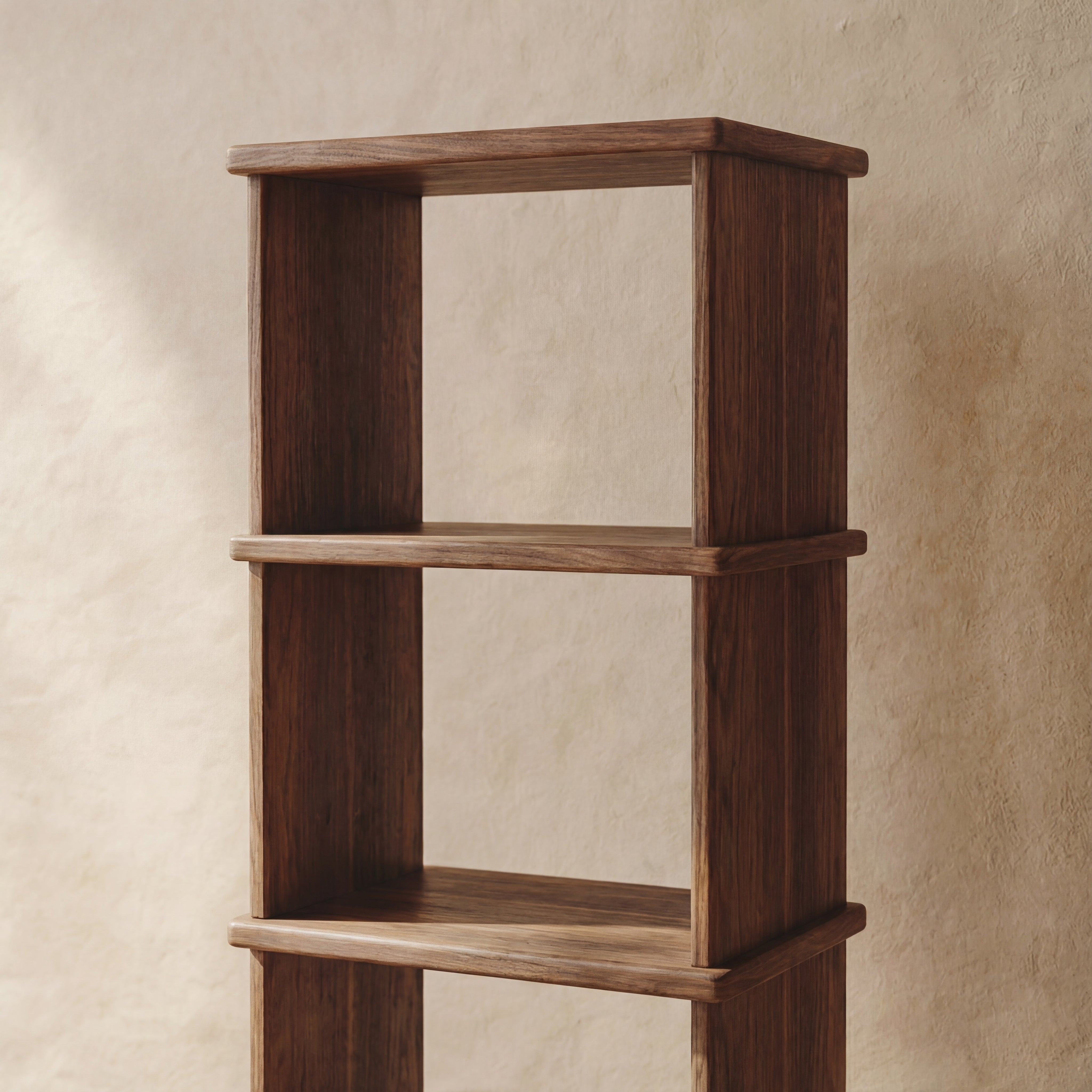 The small bookshelf is made entirely out of solid walnut, finished with a non-toxic hard wax oil to highlight the wood's natural colour and rounded over subtly to soften all of the edges.